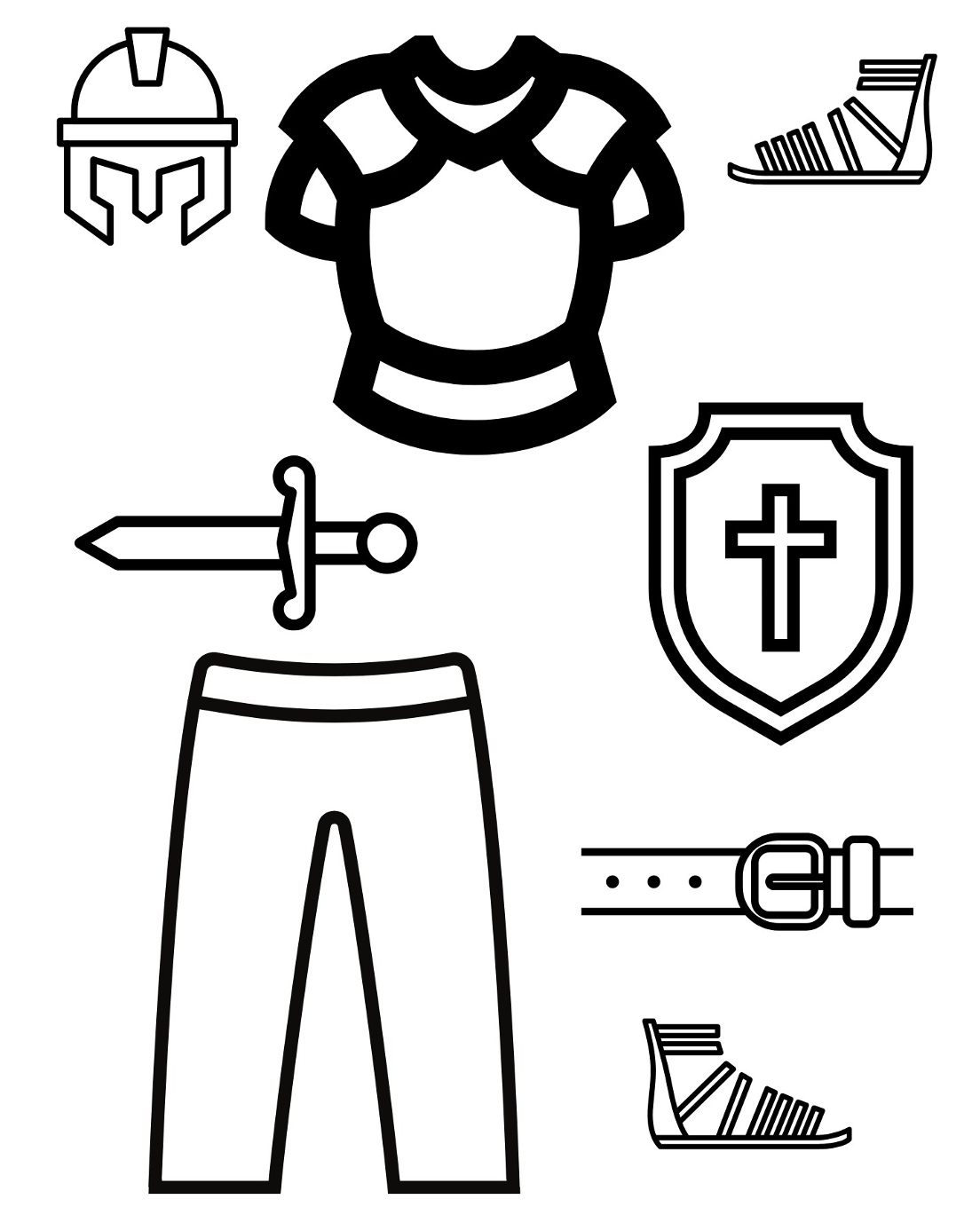 Cut and glue the pieces of armor onto the person. With each piece, discuss Ephesians